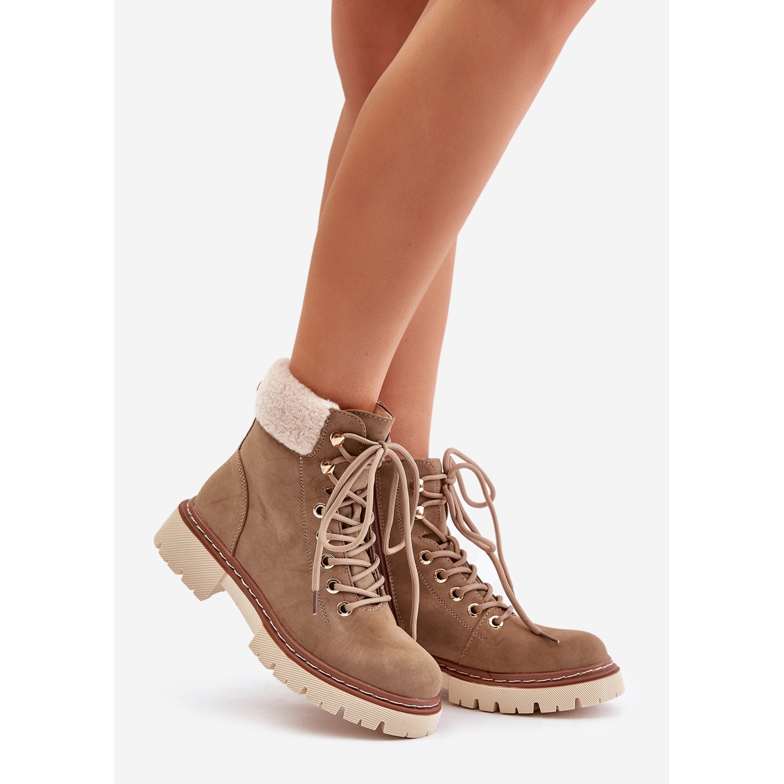Un nez arrondi et un talon plat avec une hauteur de 3,5 cm rendent les bottes confortables et classiques, ce qui en fait la solution parfaite pour les stylisations quotidiennes. La hauteur de la hauteur atteignant 14,5 cm et une largeur de 10 cm est fournie par un support et une stabilité supplémentaires, et la couleur beige de la semelle et la surface externe se mélange parfaitement avec diverses tenues.