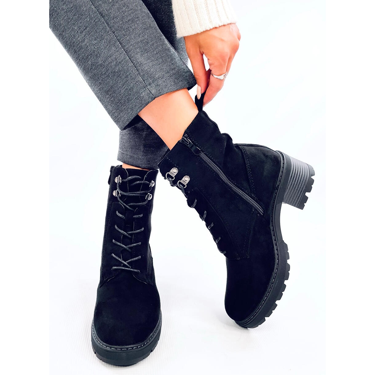 Découvrez l'élégance et le confort avec des bottes féminines noires et isolées, qui seront le complément parfait à votre garde-robe pour des jours plus frais. Fabriquées en daim écologique de haute qualité, ces bottes sont caractérisées non seulement par un style unique, mais aussi le plaisir de porter.