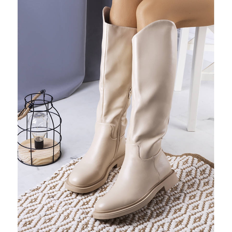 Un modèle élégant et chaleureux idéal pour la saison d'automne / hiver - Cosaques beige Prinio est une combinaison de classiques et de confort quotidien. Fabriqué en cuir écologique de haute qualité, fini d'une fourrure délicate et chaude à l'intérieur, assurez une sensation agréable d'isolation les jours plus frais. Un talon plat (3,5 cm) et un nez rond garantissent le confort de porter toute la journée.