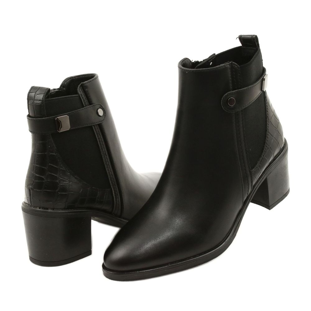 Élégant, universel et soigneusement fabriqué - ce sont des bottes Sergio Leone BT630. Le cuir écologique noir en combinaison avec une décoration animale subtile avec une attache et une décoration délicate sur le côté créent un modèle qui fonctionnera dans des stylisations élégantes et décontractées. Un type de talon bas et stable (6 cm) donne du réconfort au port toute la journée, et le nez arrondi met l'accent sur la nature classique de la chaussure.