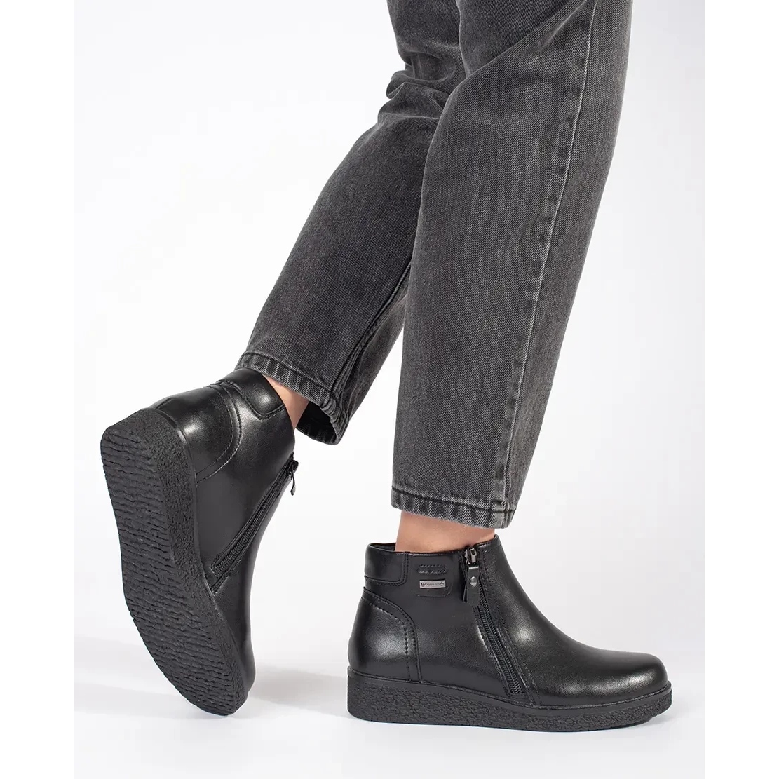La hauteur de la tige dépassant la cheville garantit une bonne protection du pied et une bonne adaptation de la tige, ce qui augmente le confort de marche. Les bottes sont disponibles dans une couleur noire classique qui ne se démode jamais.
