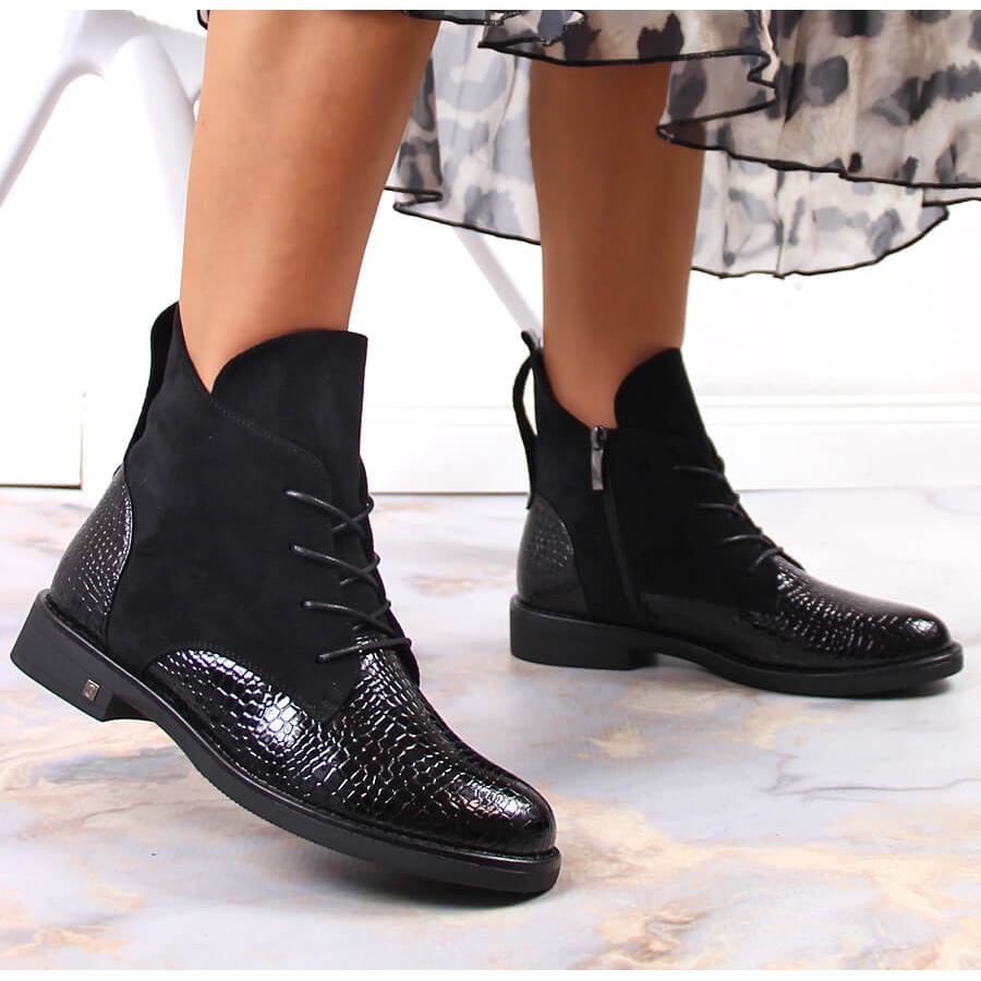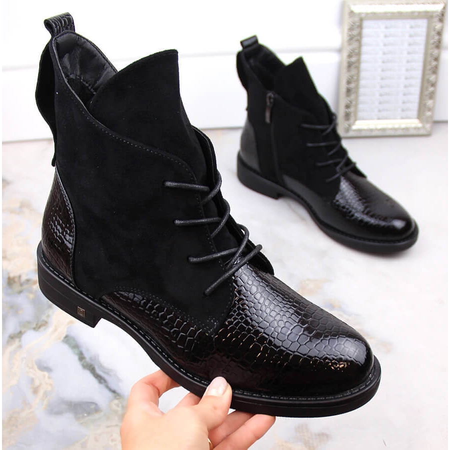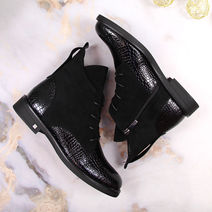 Découvrez l'élégance et le confort dans le dernier modèle de bottes pour femme Potocki, qui allient design tendance et fonctionnalité. Ces bottines noires façon crocodile sont le choix parfait pour les journées d'automne et d'hiver, offrant non seulement un look élégant, mais également une isolation efficace grâce à la doublure en couverture de la chaussure.