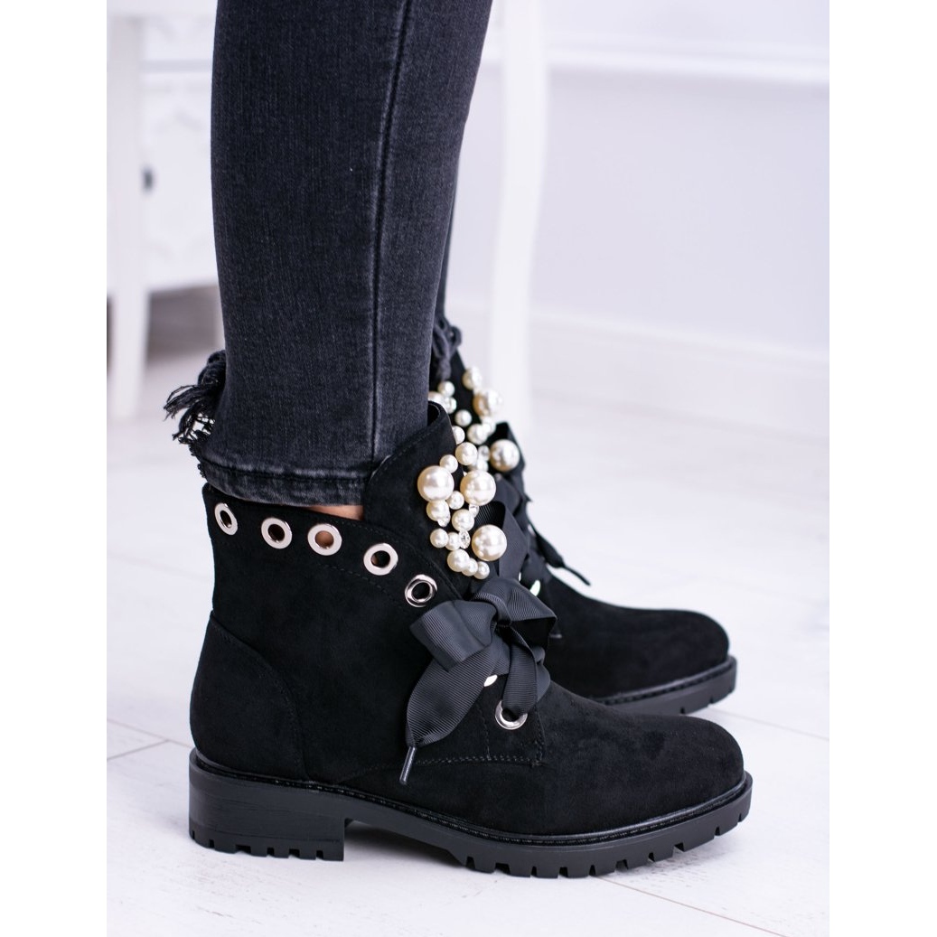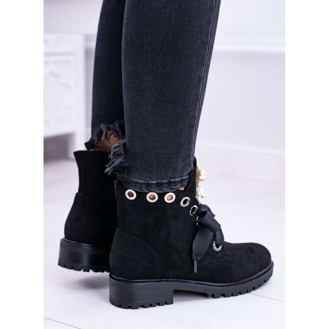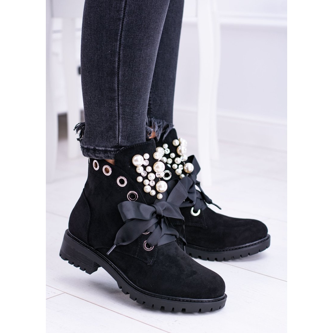 Inna marka Bottes isolées en daim avec perles et ruban, Black Perla le noir