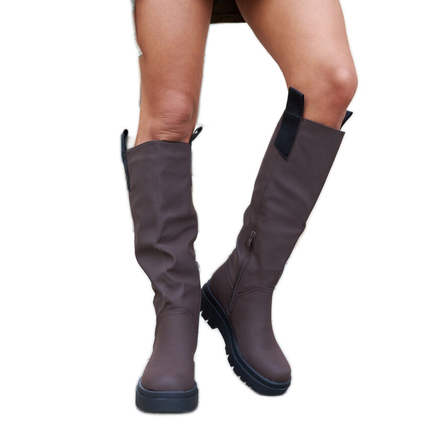 Bottes Jayden - Solution élégante, isolée et pratique pour les jours plus frais. Fabriqués de peau écologique mate en brun DK, ils combinent une coupe classique avec une finition moderne, grâce à laquelle ils sont parfaits pour les stylisations tous les jours et les plus élégantes.