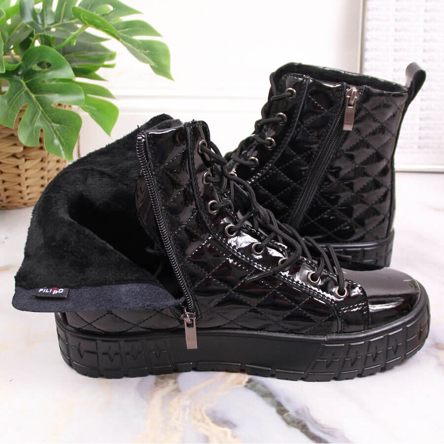 Des bottes élégantes et noires Filippo PAW369 combinent le design à la mode et matelassé avec un réchauffement pratique - parfait pour l'automne et l'hiver. Fabriqué en cuir naturel, bordé de fourrure douce à l'intérieur (à la fois la doublure et l'insertion), offrent de la chaleur et du confort lors de longues promenades dans la ville. Le fermoir lacé leur permet de faire correspondre le pied et la plate-forme solide env. 4 cm ajoute de la stabilité et de la silhouette subtilement optiquement. Les bottes atteignent la cheville (le haut d'environ 12 cm) - la coupe décontractée fonctionnera dans des stylifications de tous les jours, mais aussi pour un look urbain plus expressif.