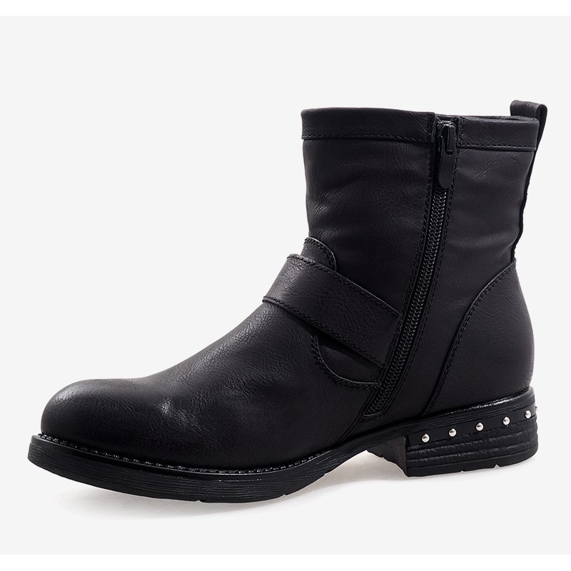 Découvrez l'élégance et le confort avec les bottines noires isolées 408-PA, qui allient design tendance et praticité. Ces bottes pour femmes uniques, fabriquées dans une matière semblable au cuir, se distinguent non seulement par leur fabrication soignée, mais aussi par des décorations originales sous forme de strass et de clous, qui leur donnent du caractère.