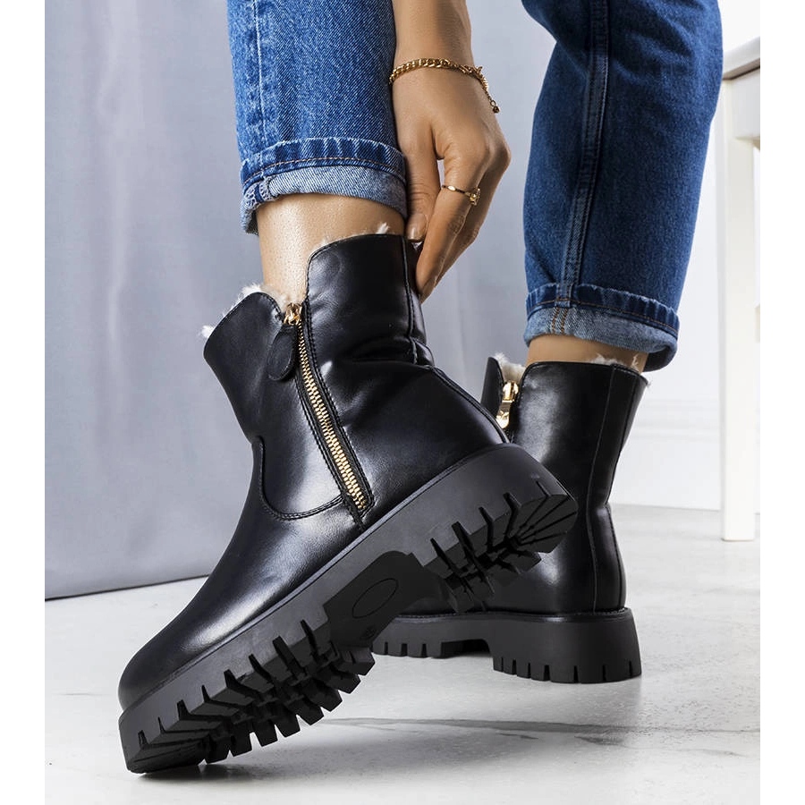 Inna marka Bottes isolées noires avec fourrure de Teris le noir