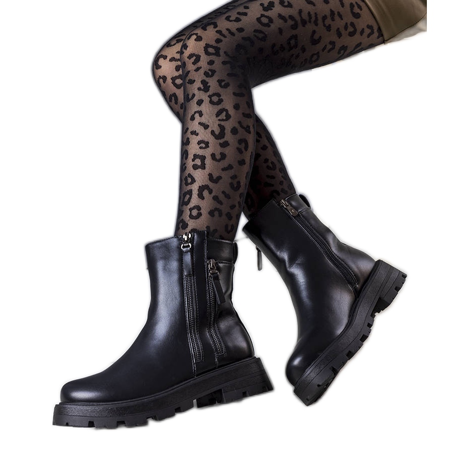 Bottes isolées en ferry noir - élégant, chaleureux et pratique. Le modèle qui s'intègre dans les tendances les plus chaudes de la saison automne / hiver: le cuir écologique noir massif et durable et intemporel créent un look à la mode et résistant au mauvais temps. L'intérieur est bordé de fourrure douce, ce qui offre un réchauffement confortable et agréable les jours plus frais.
