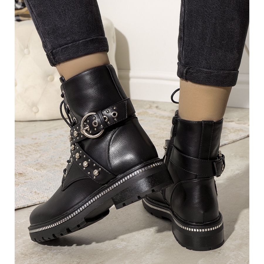 Le modèle Joann est disponible dans une couleur noire classique, ce qui le rend adapté à de nombreux styles différents. Les fermetures sous forme de fermeture éclair, de boucle et de laçage allient fonctionnalité et look tendance. Des éléments supplémentaires, tels que des strass et des strass, ajoutent de l'exclusivité à l'ensemble.