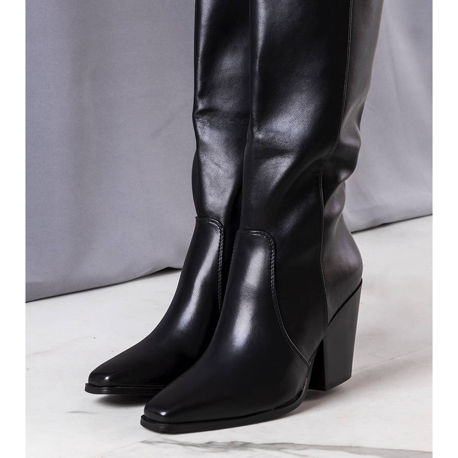 Le modèle D7897 possède un talon bloc stable de 9 centimètres qui allonge optiquement les jambes tout en offrant une marche confortable. Le bout carré donne un look actuel et tendance, et la botte hauteur genou offre une protection supplémentaire contre le froid.