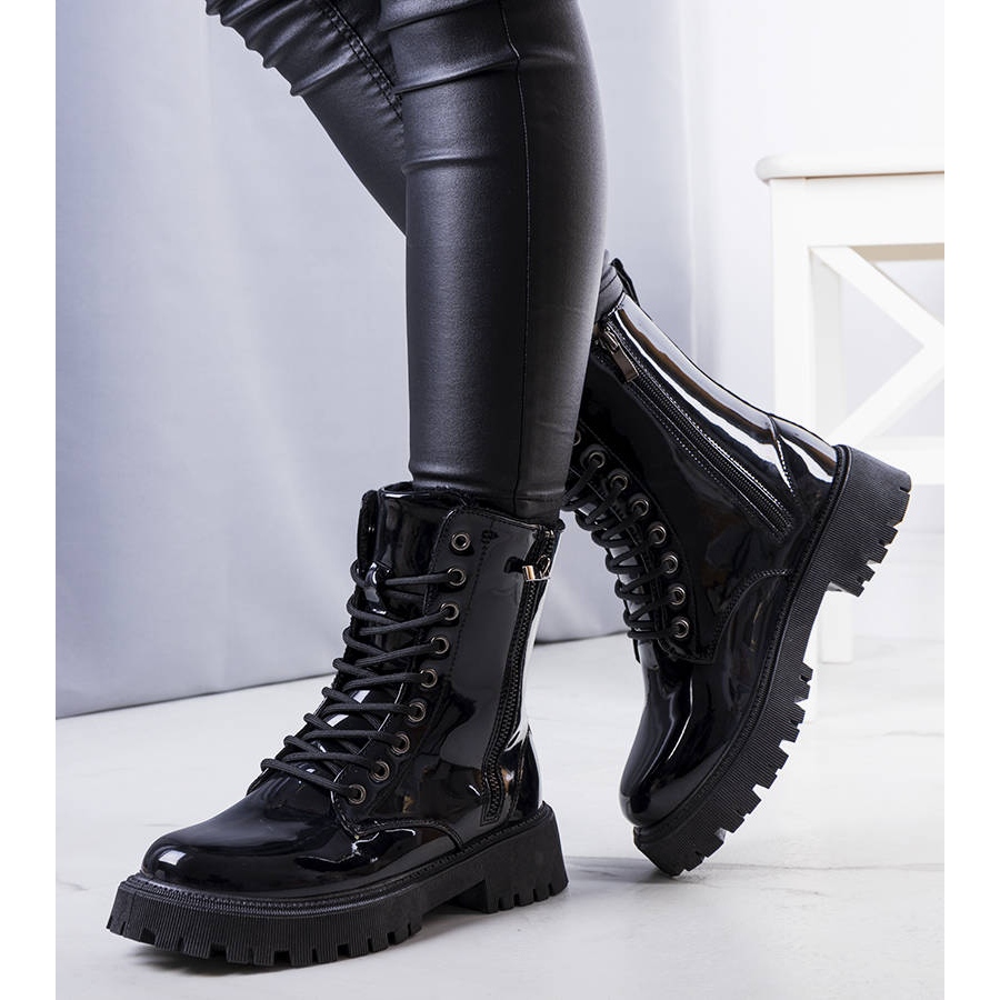 Les bottes sont disponibles dans les tailles du 36 au 41 et leur largeur supérieure est de 12 cm, ce qui assure un confort de port. Un avantage supplémentaire est la finition laquée, qui leur confère un caractère élégant. Fermées par une fermeture éclair et lacées, elles s'adaptent parfaitement au pied, ce qui augmente le confort d'utilisation.