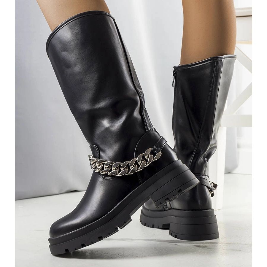 Les bottes ISAI élégantes et isolées noires sont une proposition pour les femmes qui apprécient le confort combinées à un design à la mode et intemporel. Fabriqué en cuir écologique de haute qualité, avec l'isolation tactile imitant la fourrure, assurez-vous le confort même les jours froids. Une plate-forme stable et élevée (5 cm) en caoutchouc, résistant aux conditions météorologiques ajoute du caractère et augmente la durabilité des chaussures. Une chaîne subtile est un détail à la mode qui met l'accent sur leur coupe universelle et classique.