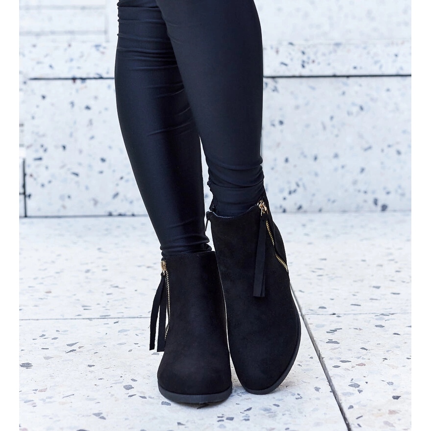 Les bottes isolées en éco-daim noir Paien sont un produit respectueux de l'environnement en daim écologique. Les chaussures sont dotées d'une semelle intérieure isolée qui procure de la chaleur, même par temps très froid. Le modèle se caractérise par un bout rond, qui ajoute un look élégant aux bottes. Les bottes sont faciles à enfiler grâce à la fermeture éclair.