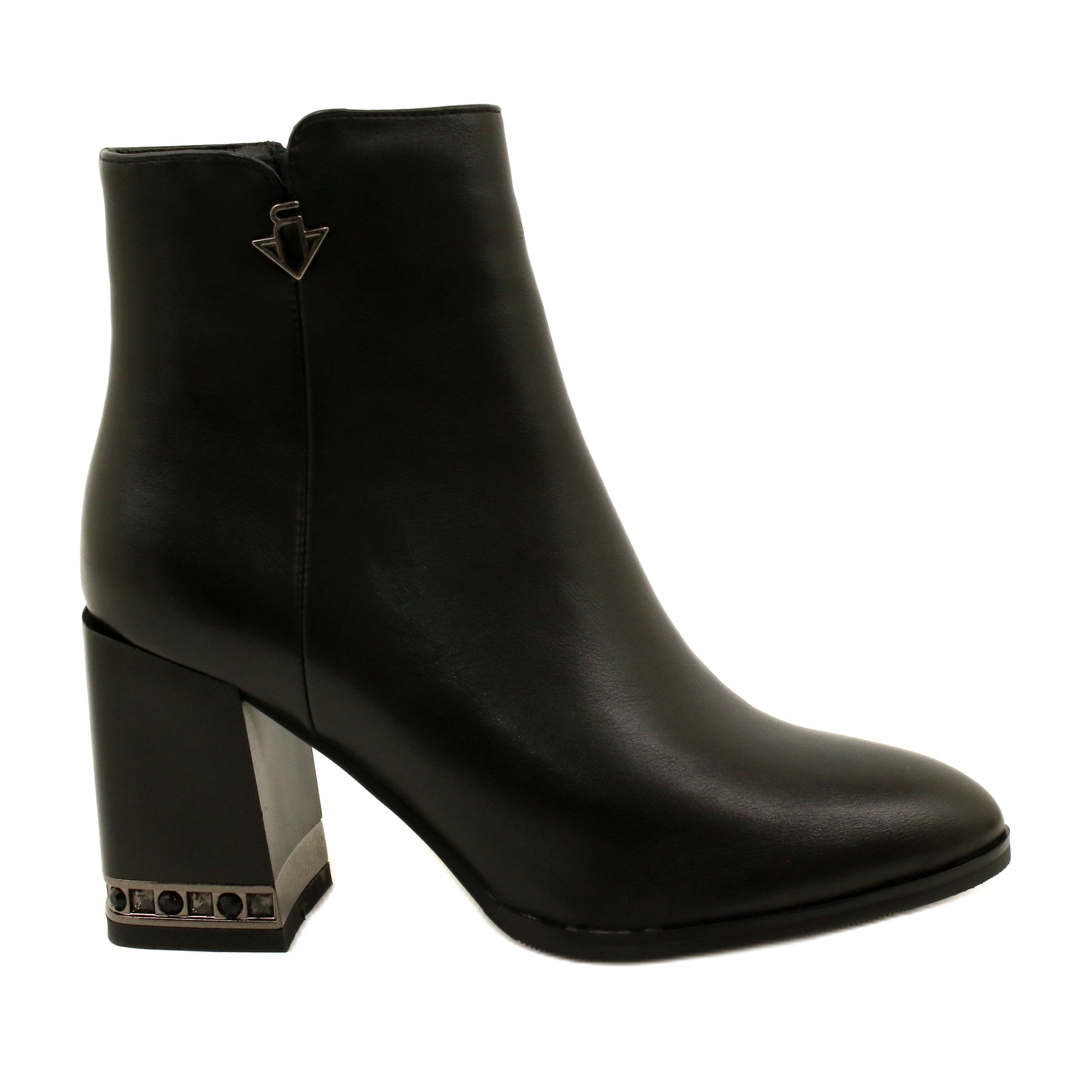 Fabriquées en cuir écologique de haute qualité, ces bottines se caractérisent par un savoir-faire précis et un design extraordinaire. Le talon décoratif en forme de poteau, de 8 cm de haut, est décoré de subtils zircons, qui attirent l'attention et ajoutent un caractère unique à chaque pas. Le bout en amande et la hauteur supérieure de 15 cm permettent aux chaussures de s'adapter parfaitement au pied tout en offrant un confort de port.