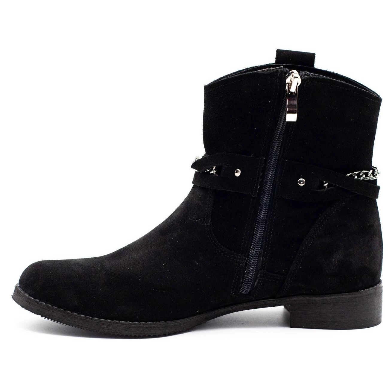 Élégant, confortable et confortable - parfait pour les jours d'hiver. Le daim noir (cuir naturel) et la chaîne décorative ajoutent du caractère, et le réchauffement interne offre un confort même à basse température. L'insert profilé et une garantie solide et synthétique garantie stable et un support de pied sécurisé. La fermeture à glissière sur le côté facilite la mise en place et la retirer, et le talon bas de 3 cm assure le confort de porter toute la journée.