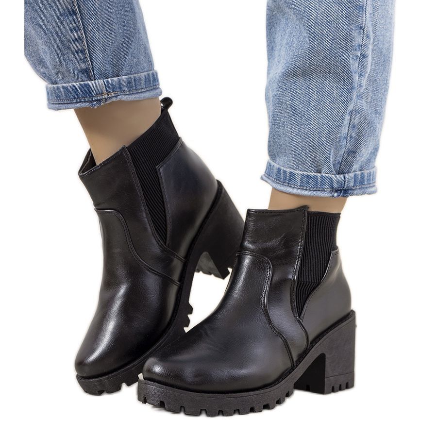 Des bottes élégantes et universelles Ruel en cuir écologique sont une proposition idéale pour la saison d'automne. Classic, noir et simple et lisse, le modèle correspond facilement à la fois tous les jours et les stylisations plus formelles. L'intérieur bordé de fourrure chaude offre un confort thermique, et un talon léger et stable du Klocek a subtilement élimenté la figure.