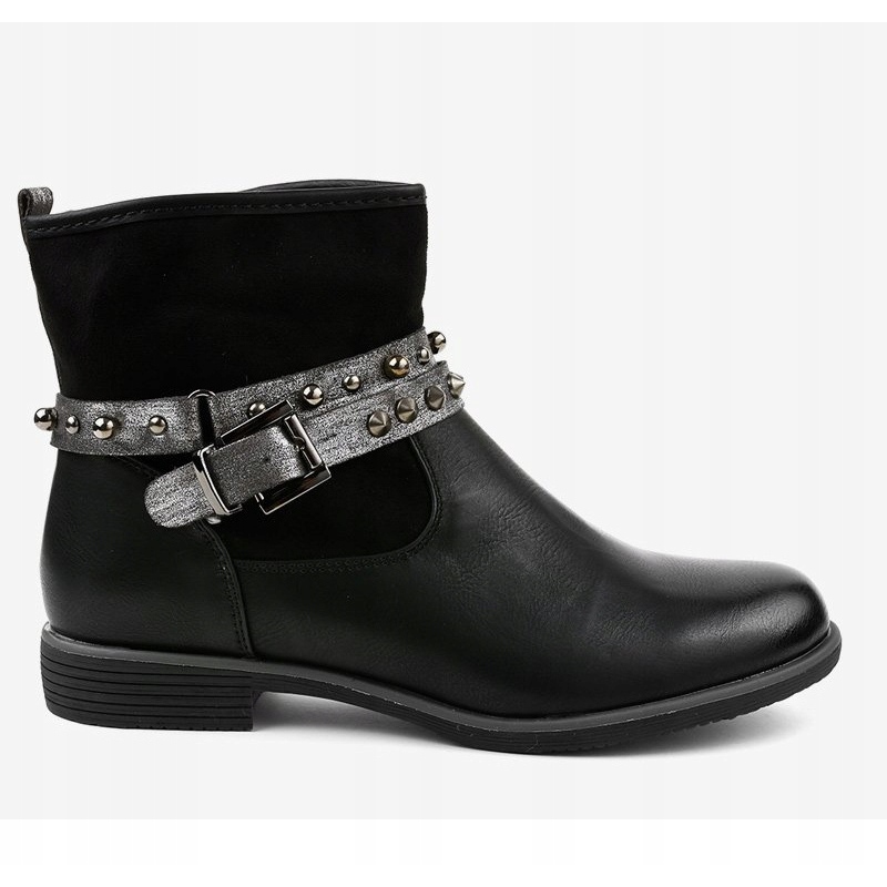Les bottes ont un petit talon large de 3 cm de haut, ce qui en fait un choix parfait pour les longues promenades et un usage quotidien. La fermeture éclair facilite l'enfilage et les brides décoratives avec boucle et strass confèrent aux chaussures un caractère unique.