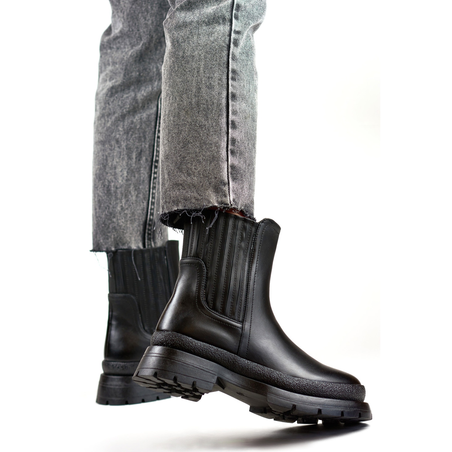 Fabriqués en cuir organique de haute qualité, les bottes sont caractérisées par une apparence esthétique qui peut être combinée avec diverses stylisations - à la fois avec des robes et des pantalons. Grâce à la hauteur de la tige de 15 cm, les chaussures ajoutent de l'élégance et mettent l'accent sur la figure féminine. Le talon bas avec une hauteur de 3,5 cm assure la stabilité et la commodité de porter toute la journée, ce qui en fait le choix parfait pour les sorties quotidiennes.