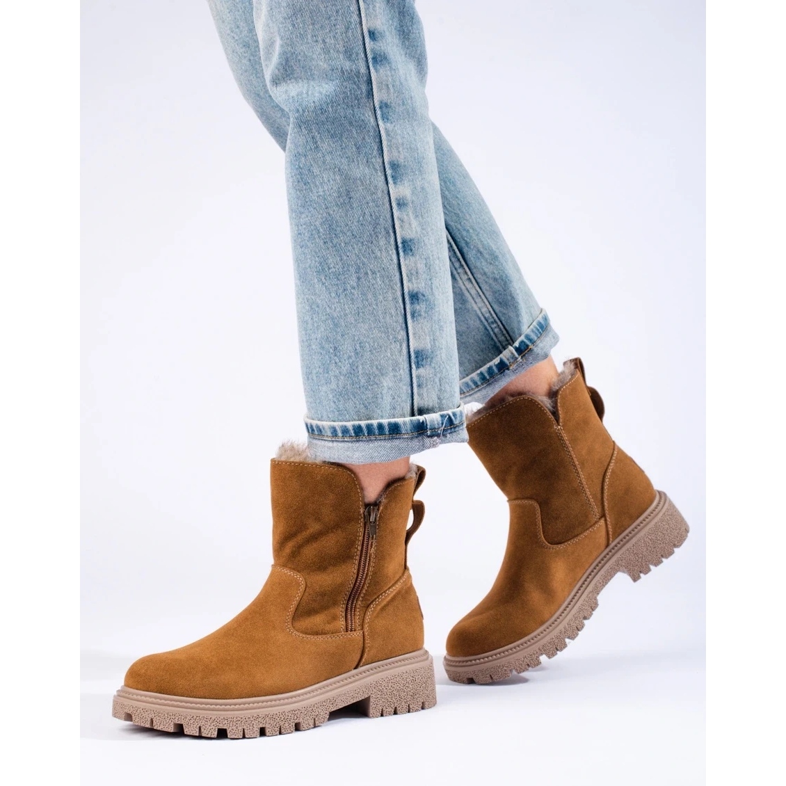 L'isolation sous la forme d'un manteau en peau de mouton vous gardera au chaud pendant les journées d'hiver, et la semelle synthétique avec bande de roulement garantit une traction adéquate sur diverses surfaces. La fermeture éclair permet d'enfiler et d'enlever rapidement les chaussures, ce qui est extrêmement pratique au quotidien.