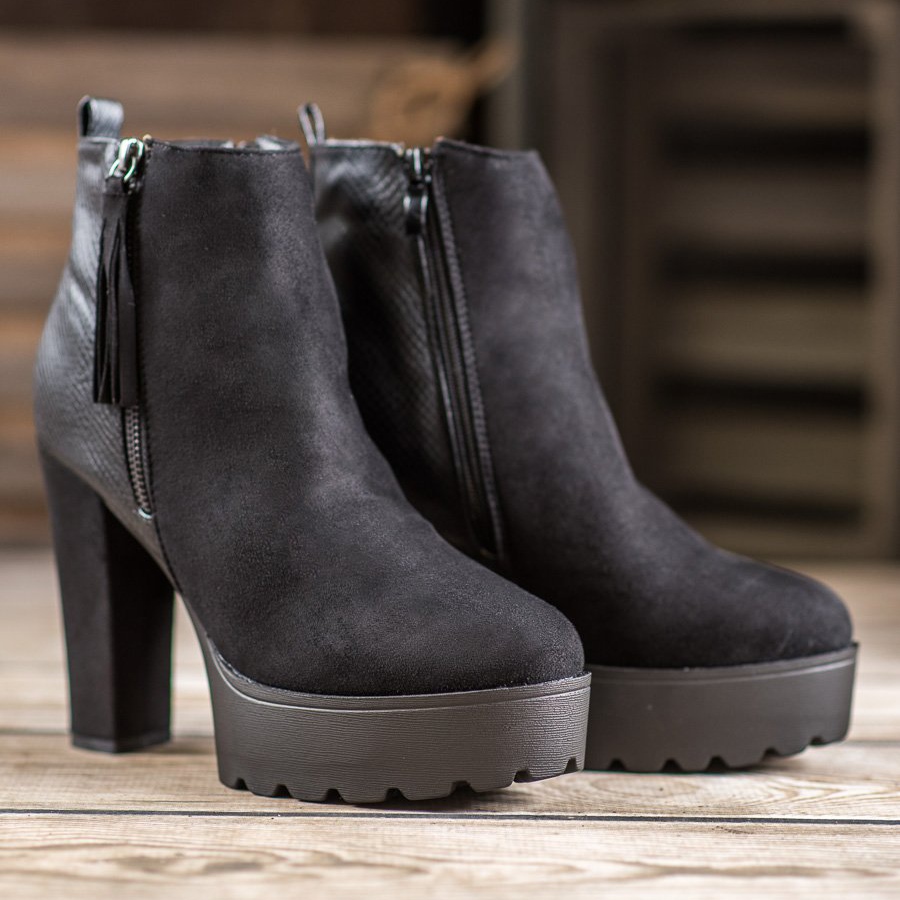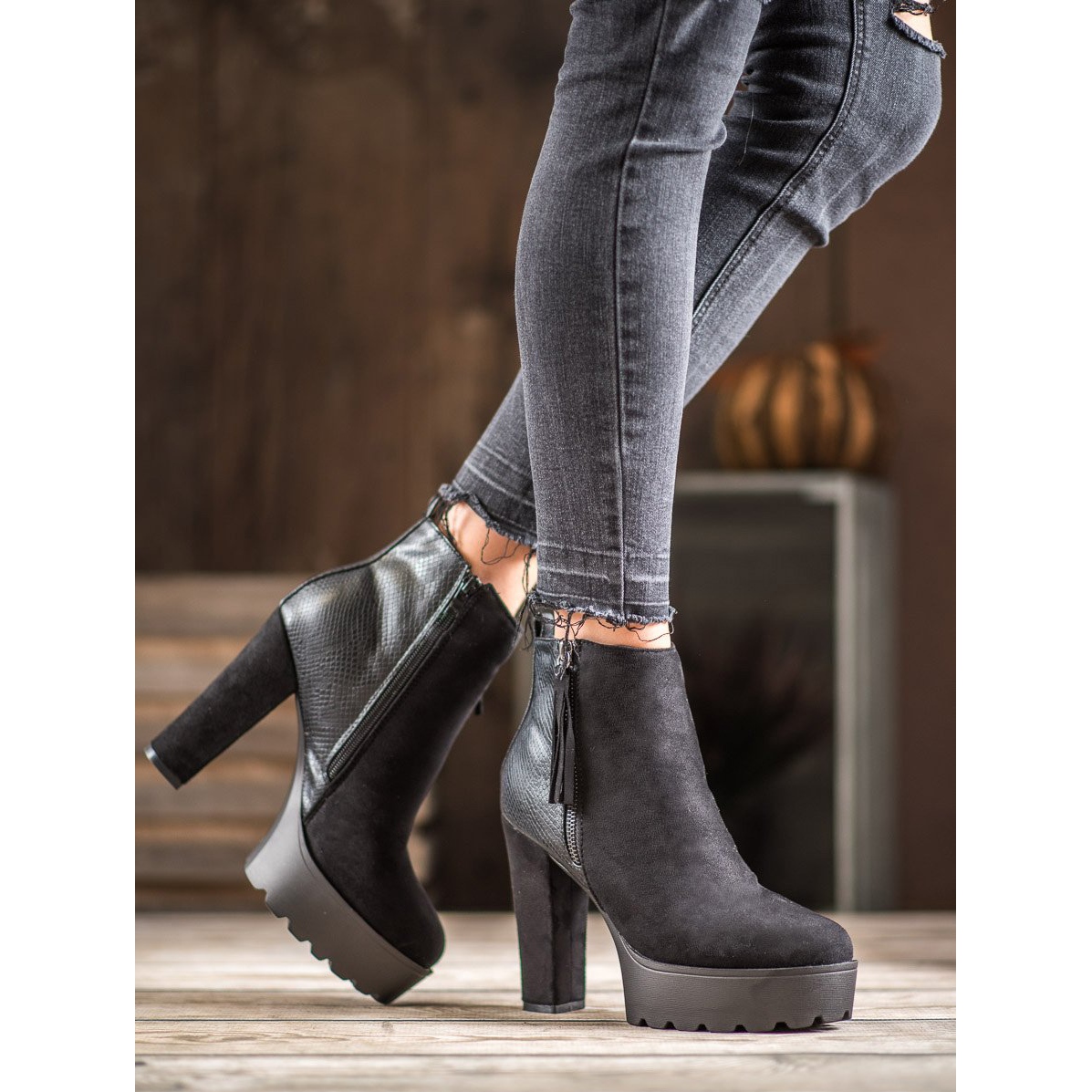 Les bottines Weide sont équipées de plateformes solides, mais en même temps étonnamment légères, qui ajouteront quelques centimètres à la taille de toute femme sans sacrifier le confort. Un talon bloc d'une hauteur impressionnante de 12 cm combiné à une plateforme de 3,5 cm assure la stabilité même en cas de port prolongé.