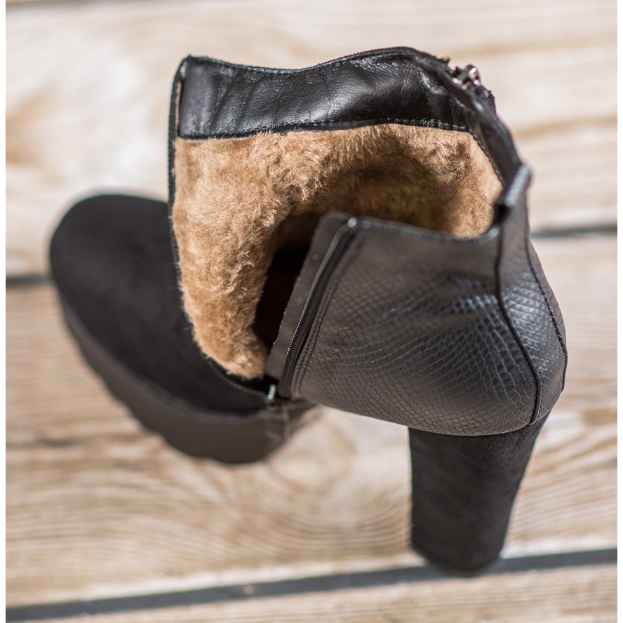Ces bottines uniques sont la quintessence du chic hivernal en version urbaine. Fabriqués dans un matériau semblable au cuir de haute qualité, ils garantissent non seulement un aspect esthétique, mais également une durabilité d'utilisation. Conçu pour les femmes modernes qui apprécient la combinaison de mode et de fonctionnalité.