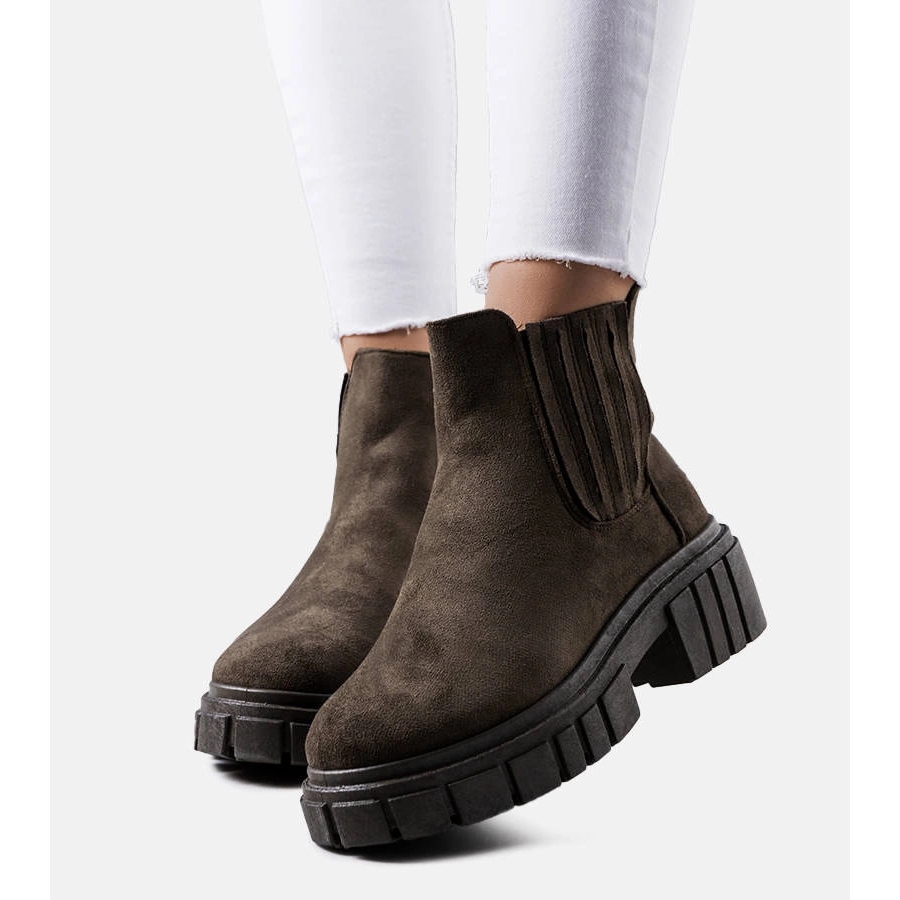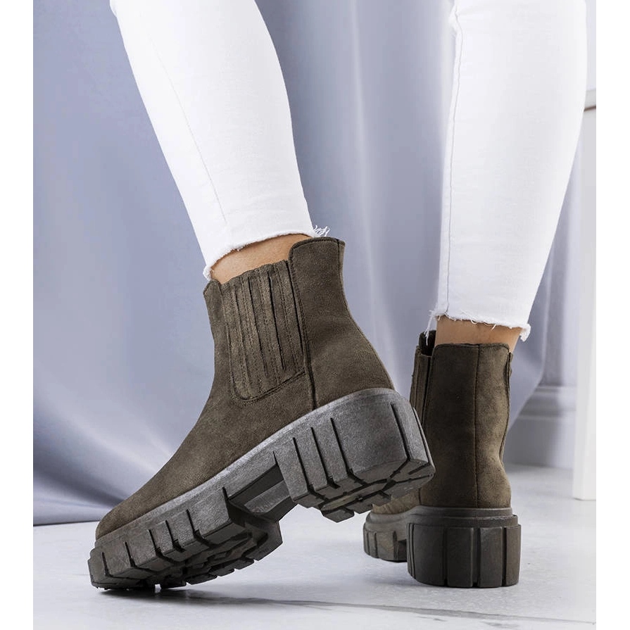 La hauteur du talon de 5 cm, sur la plateforme, rend les chaussures confortables à porter toute la journée. La couleur verte de la semelle et le design général font que ces bottes s'intègrent parfaitement dans les tendances de la mode actuelles.