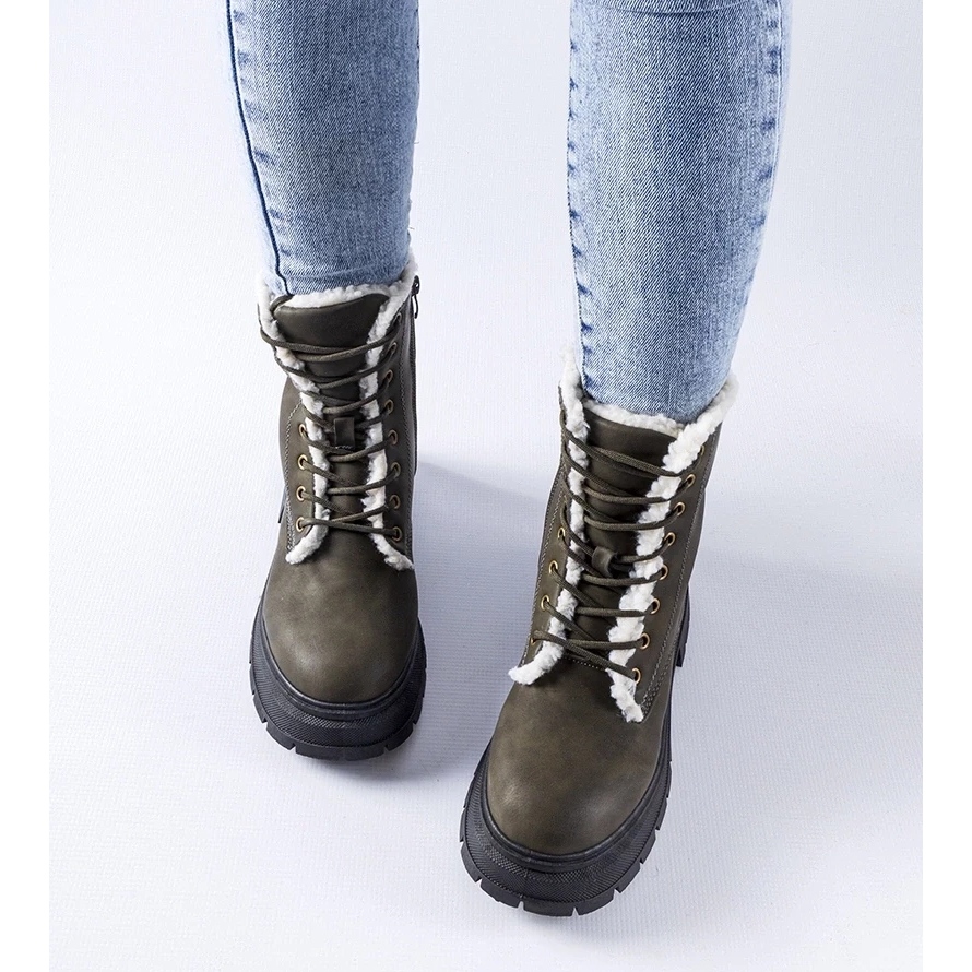 Ces bottines modernes sont montées sur une plateforme, ce qui leur donne un look mode. Ils sont dédiés à la jeune génération qui valorise les tendances et le confort. De plus, ils sont isolés, ce qui leur permet de rester au chaud même les jours les plus froids. La couleur verte les rend originales et se démarque des autres chaussures d'hiver.