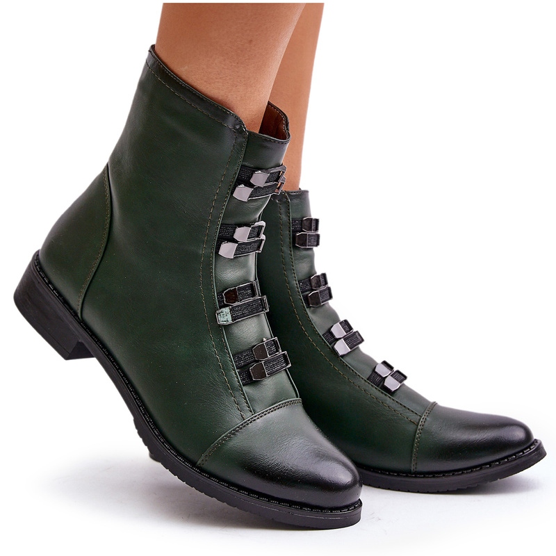 Détails: Jezzi Bottes isolées vertes pour femmes avec fermeture éclair Evalith