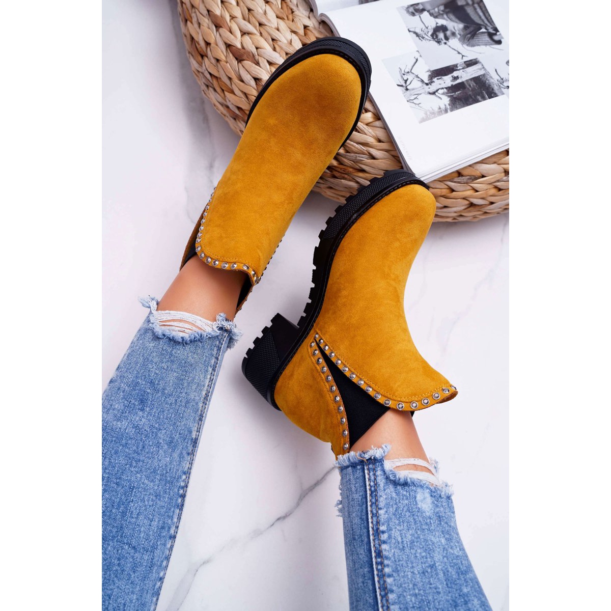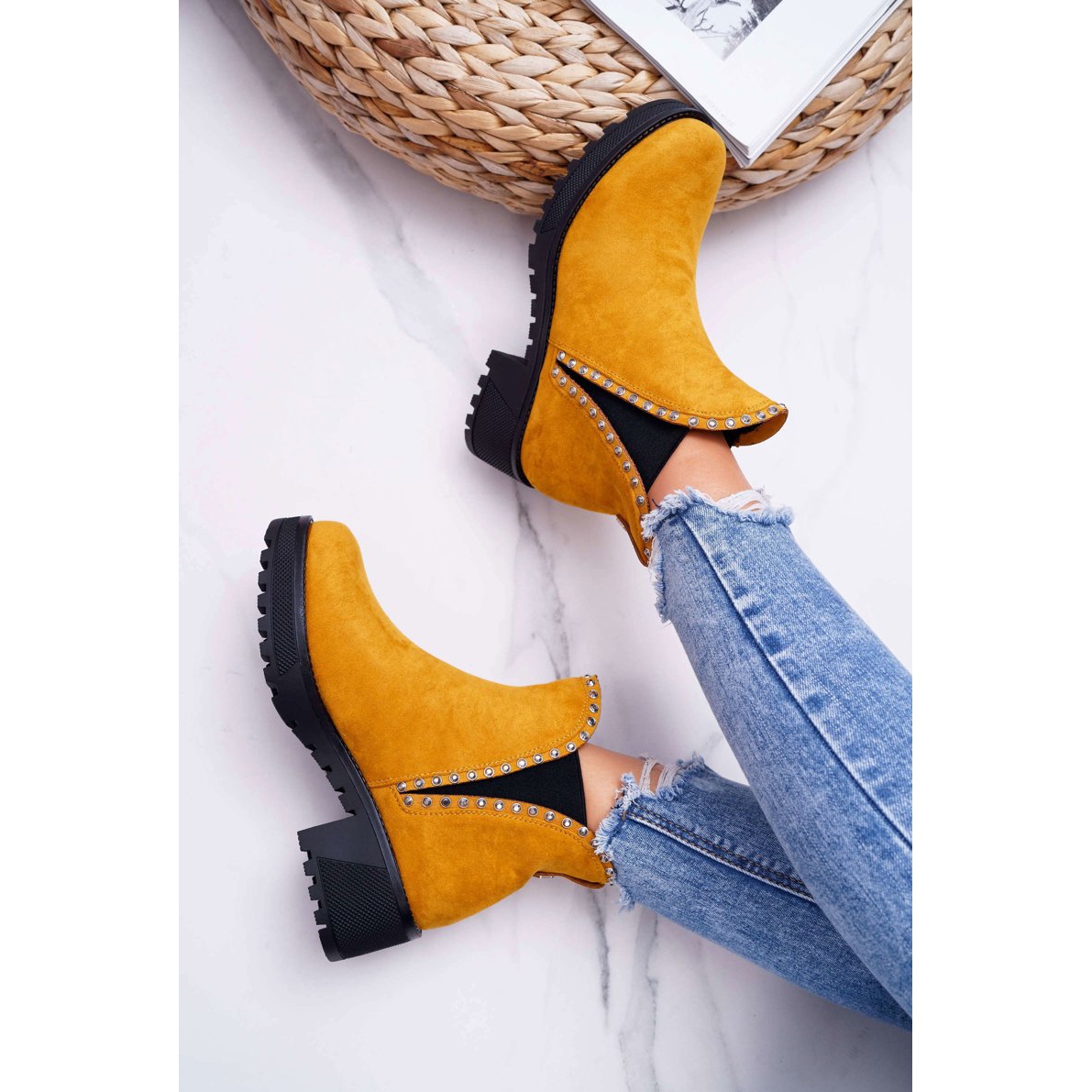 Découvrez le style et le confort avec les bottines Chelsea FRBS d'une belle couleur jaune, qui se distinguent par une subtile décoration avec des zircons. Ces chaussures classiques allient parfaitement élégance et design moderne, ce qui en fait un complément parfait aux styles quotidiens et plus sophistiqués.
