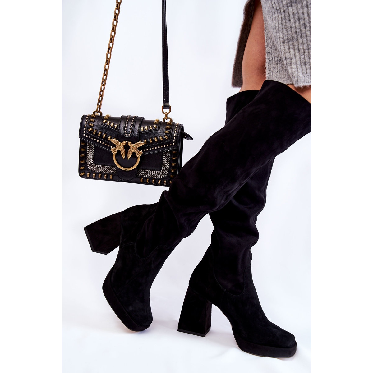 Découvrez l'élégance et le confort avec les bottes en daim noir pour femmes de PA2. Ces bottes élégantes sont fabriquées en cuir naturel de haute qualité, ce qui les rend non seulement belles mais aussi durables. Le modèle à enfiler avec bout carré ajoute un caractère moderne, tandis que le talon bloc massif et la plateforme délicate assurent une excellente stabilité.