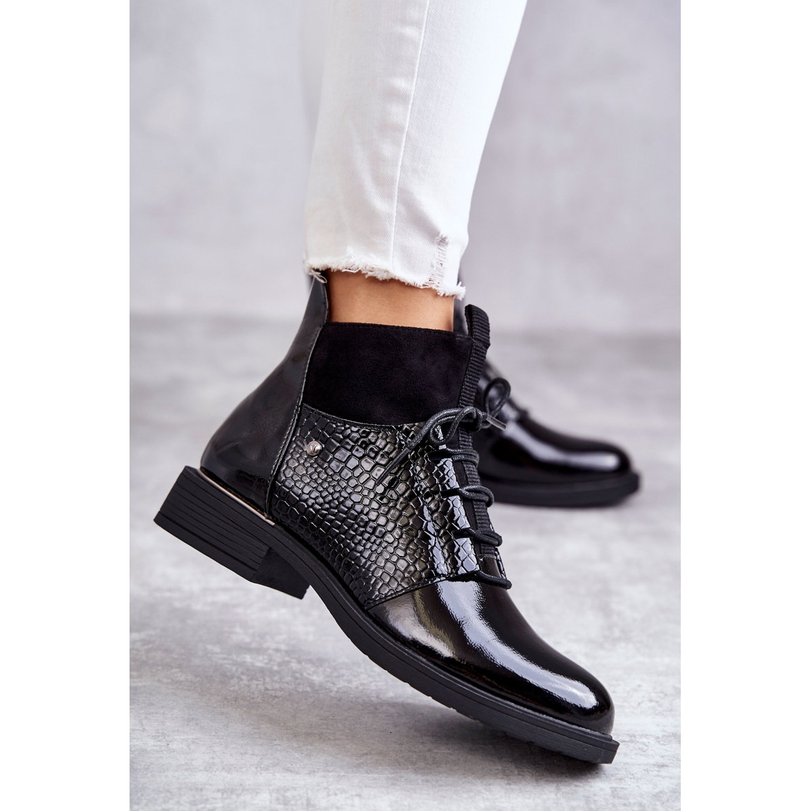 Bottes isolées pour les journées plus froides - une combinaison parfaite de style et de confort. Vinceza présente le modèle Cathrine - des bottines à lacets vernies et isolées dans la couleur d'un classique élégant - le noir profond. Ces perles noires sont un incontournable dans la garde-robe de toute femme à la mode qui valorise la chaleur et la beauté même pendant les mois les plus froids.