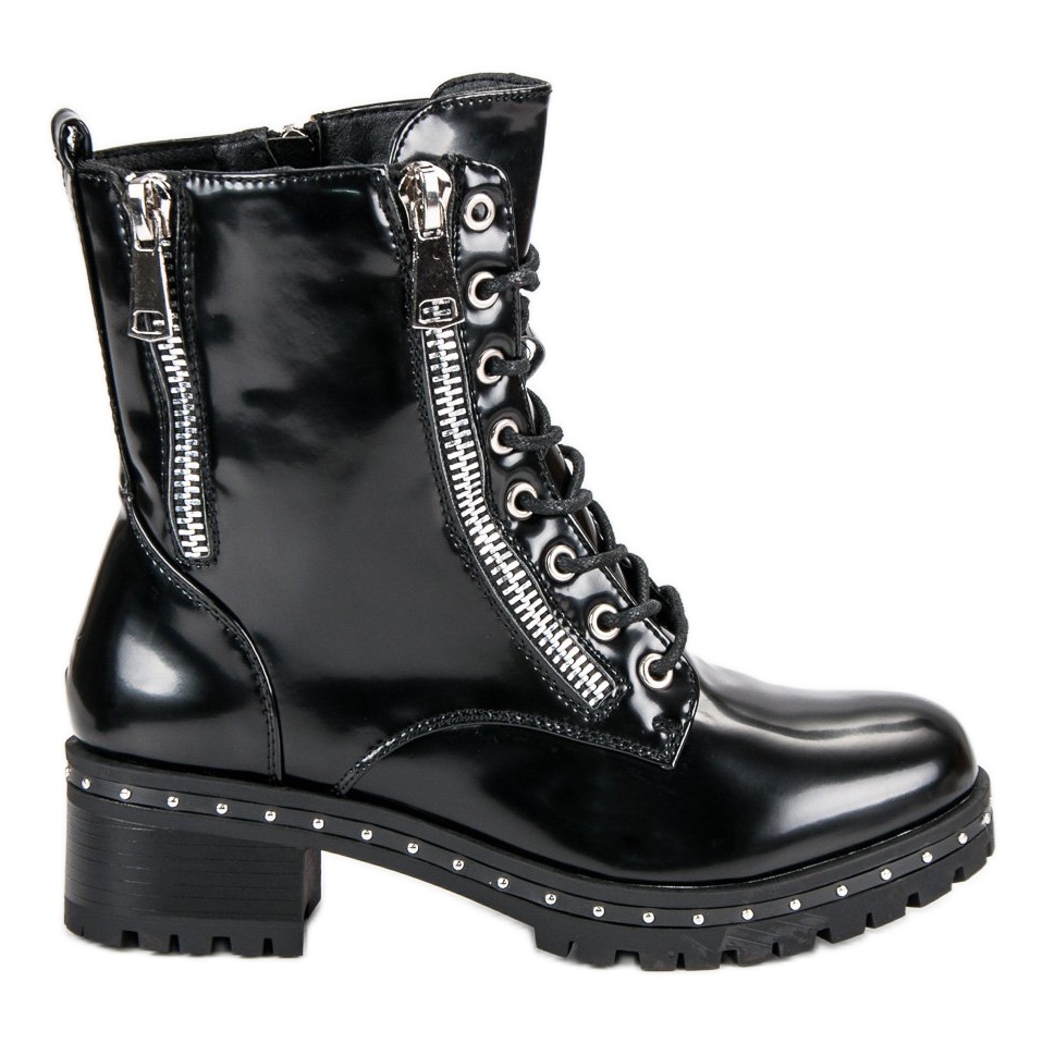 Découvrez des bottes de travail laquées uniques dans une élégante couleur noire, qui sont le choix parfait pour les journées plus froides. Ces chaussures élégantes sont fabriquées en cuir écologique de haute qualité, ce qui les rend à la fois tendance et respectueuses de l'environnement. Leur effet brillant et laqué leur confère un caractère unique et s'intègre en même temps parfaitement dans de nombreux styles.