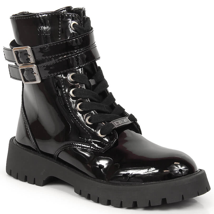 Bottes laquées des filles isolées Big Star KK374131 - style et chaleur les jours plus frais. Un matériau extérieur impressionnant et verni noir combiné à une fourrure douce à l'intérieur offre une apparence élégante et un confort thermique, idéal pour l'automne et l'hiver. Le modèle conçu pour le confort de l'enfant: le laçage vous permet de faire correspondre le pied, le curseur facilite la mise en place rapidement, et le Fester raide stabilise le talon en marchant.