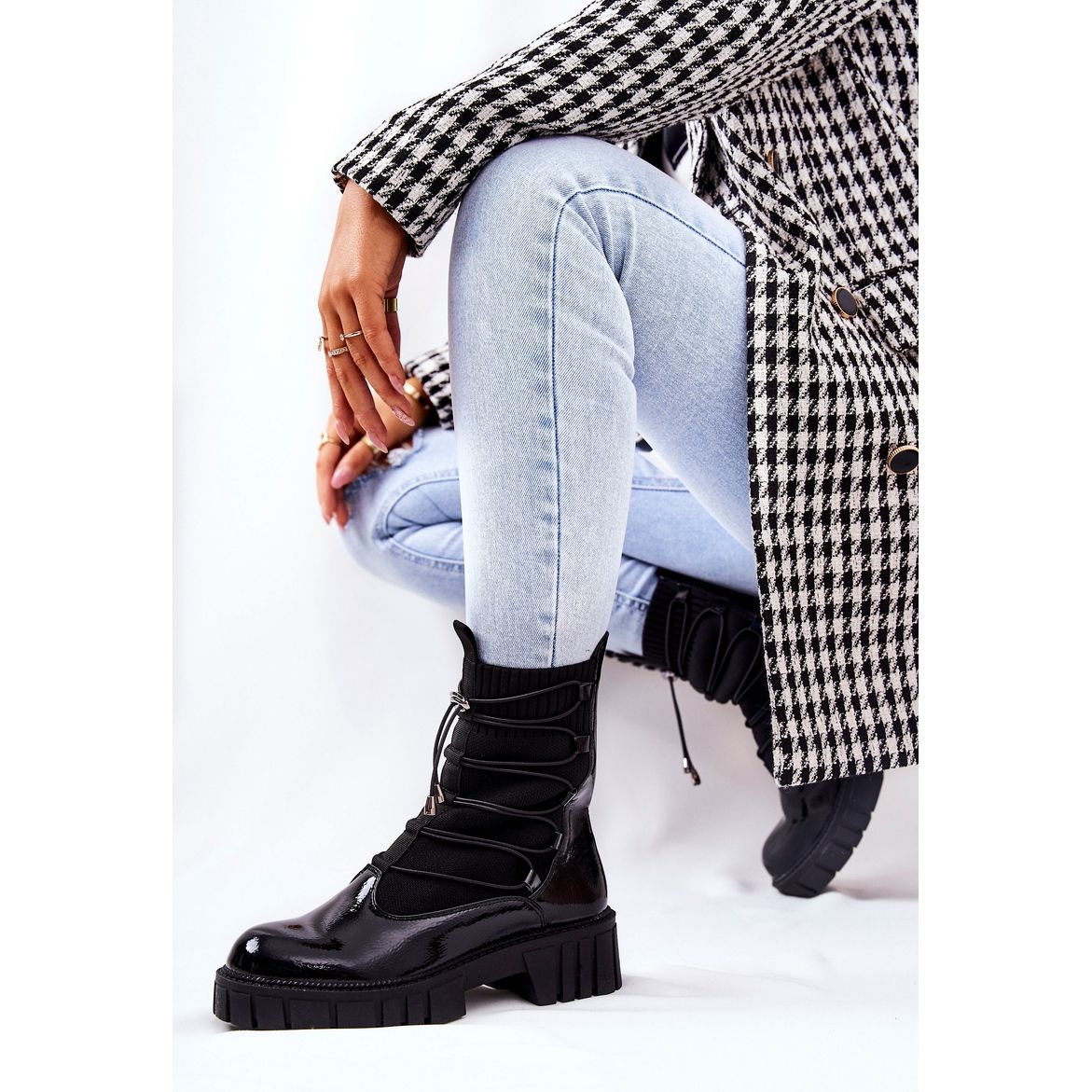 PL4 Bottes Laquées Ouvriers Avec Chaussette Noir Connor