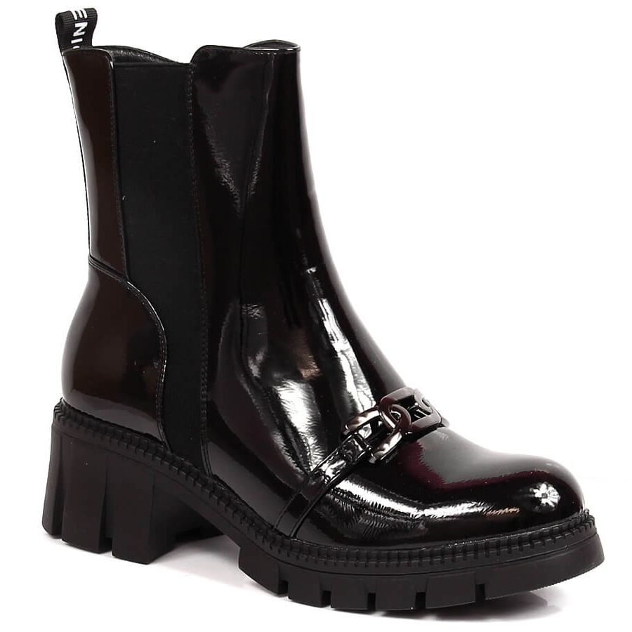 - Modèle: Bottines en cuir verni avec chaîne Potocki