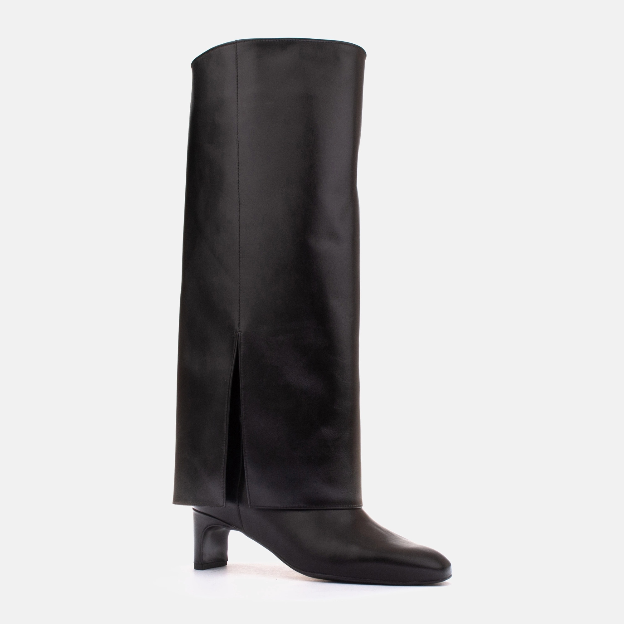 Un avantage supplémentaire du modèle CLEO est le talon bas de 5,5 centimètres sous la forme d'un poteau, qui assure la stabilité et le confort lors de la marche. Grâce à l'insertion, mettre le cosaque est simple et pratique. L'orteil en forme d'amande ajoute l'élégance et le caractère élégant de toute la stylisation.