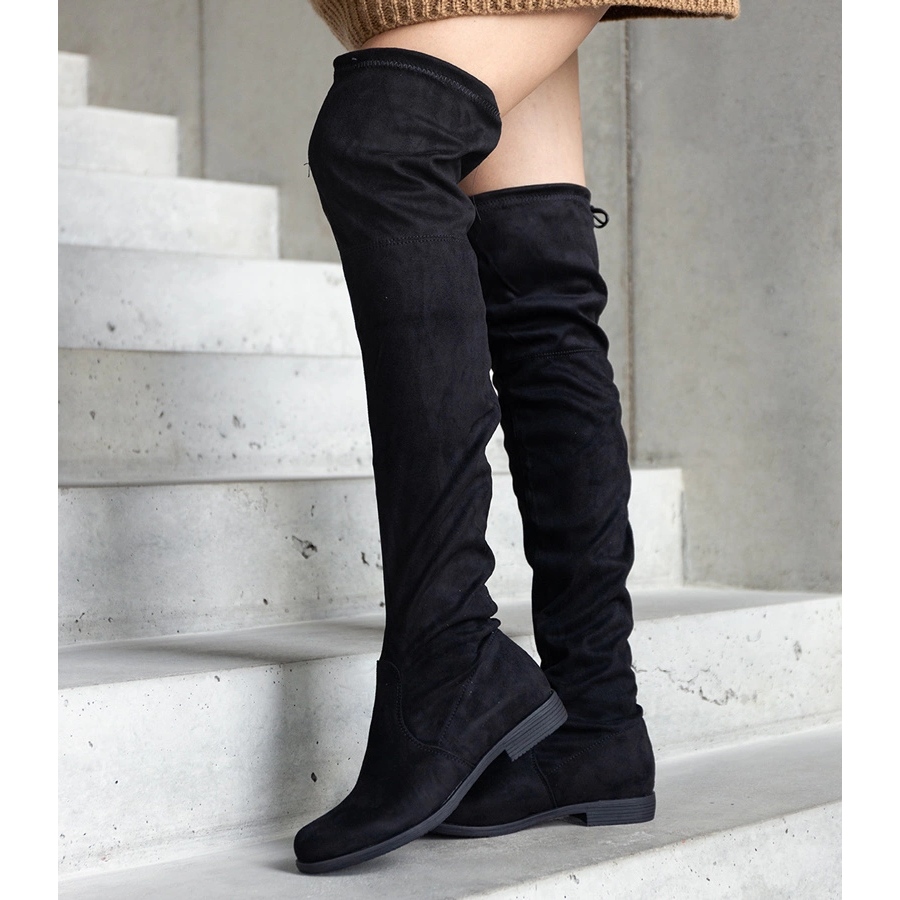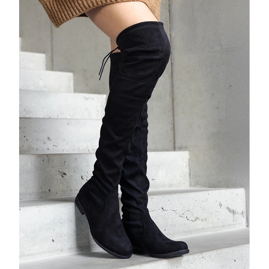 La hauteur au-dessus du genou, avec classe et sophistication, met parfaitement en valeur les jambes, et la plateforme de 2,5 cm de hauteur offre une stabilité et un confort supplémentaires lors du port. Fabriquées en éco-daim de haute qualité, ces bottes sont non seulement esthétiques, mais aussi écologiques. Les semelles en caoutchouc garantissent une excellente adhérence, ce qui les rend adaptées aussi bien aux promenades en ville qu'aux sorties quotidiennes.