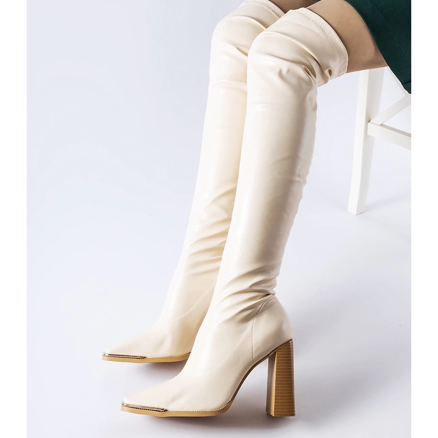Inna marka Bottes longues beiges à talons hauts de Faubourg