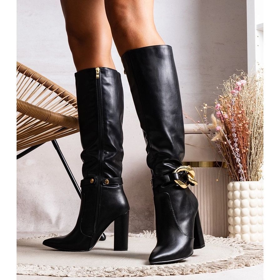 Découvrez les bottes Macari isolées noires - un véritable succès de cette saison parmi les modèles de cow-boy. Ces chaussures élégantes et extrêmement féminines sont une combinaison de cuir écologique de haute qualité et de design à la mode. Leur coussin caractéristique dans le Spitz et assorti supérieur décoré avec une chaîne éliminaient optiquement leurs jambes, ce qui fait que chaque femme se sent spéciale en eux.