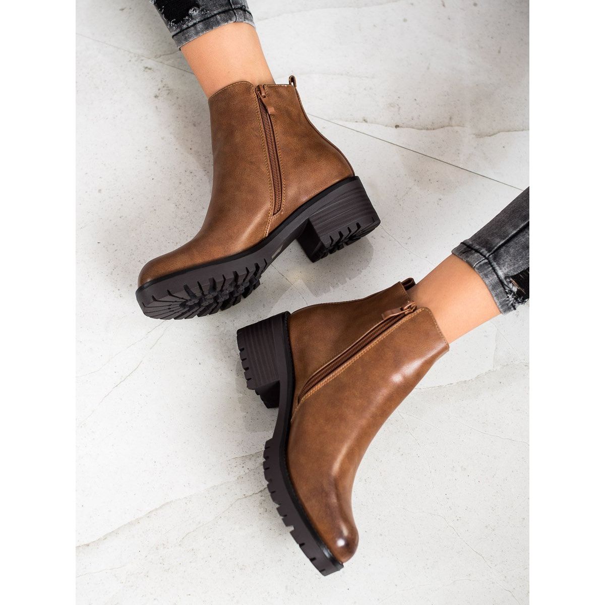 Les bottes marron confortables se caractérisent par un talon stable en forme de bloc d'une hauteur de 5 cm, qui assure un confort lorsqu'elles sont portées pendant de longues périodes. De plus, une semelle synthétique solide avec bande de roulement garantit une bonne adhérence au sol, ce qui est particulièrement important en automne et en hiver.
