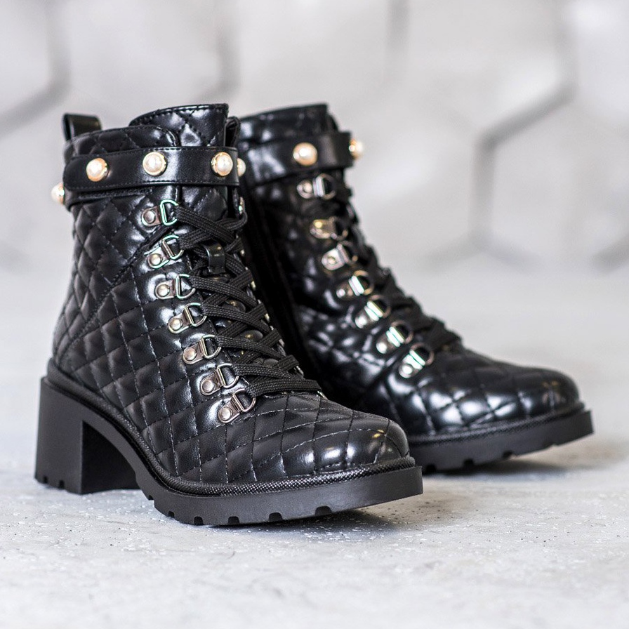 Fabriqués en cuir écologique de haute qualité, avec un motif matelassé, ils sont extrêmement attrayants. Grâce aux lacets sur le devant et à une fermeture éclair pratique à l'intérieur, les enfiler et les enlever est un pur plaisir. Une semelle solide avec une plateforme de 2 cm de haut et un talon de 5,5 cm assurent non seulement un look tendance, mais aussi un confort de port tout au long de la journée.