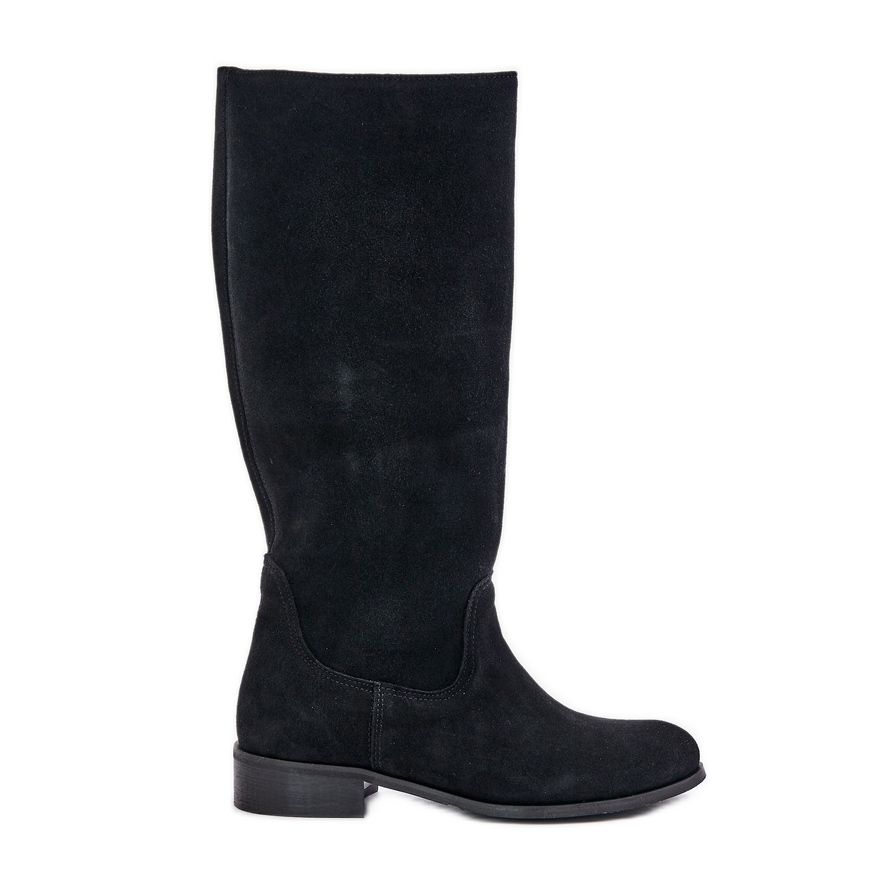 Détails: Lewski Shoes Bottes mi-mollet en daim pour femmes avec fermeture éclair gauche 3616 noir