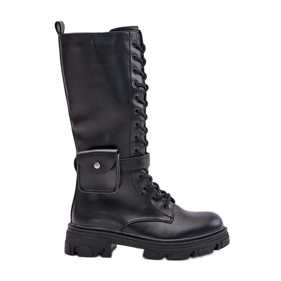 Bottes isolées Les bottes à moitié comprimées avec un sachet d'immeuble noir sont le choix parfait pour les femmes qui veulent combiner le style à la mode avec la fonctionnalité. Fabriqués en cuir écologique de haute qualité, ces bottes se distinguent par un design unique qui attire l'œil. La supérieure décorée d'un petit sachet détachable sur la ceinture ajoute un caractère inhabituel, ce qui rend chaque originalité de gain de stylisation.