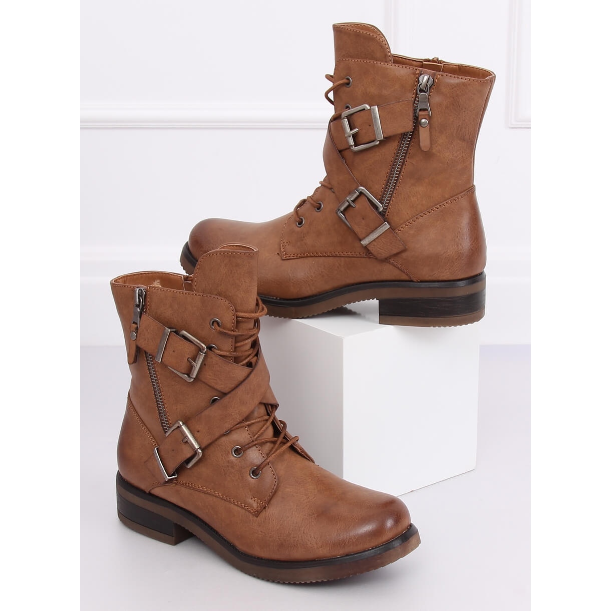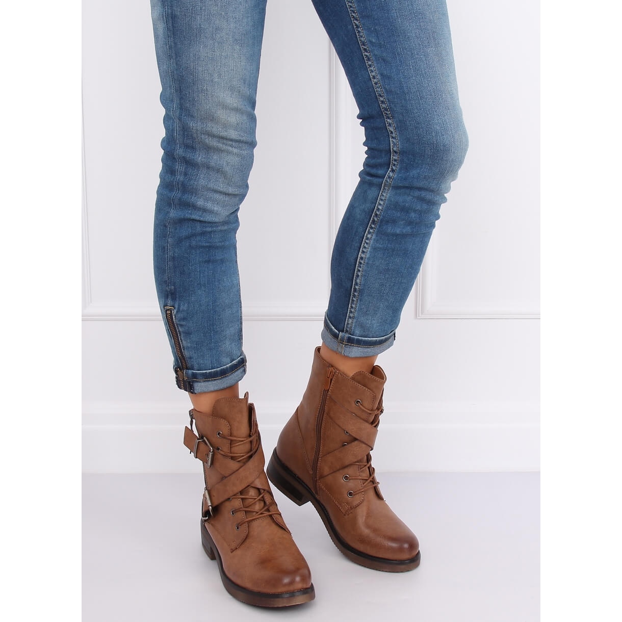 Découvrez notre dernière proposition qui correspond parfaitement aux tendances actuelles - les bottes militaires de travail C581 en marron camel ! Ces bottines plates à lacets pour femme sont un incontournable de toute garde-robe. Leur design intemporel avec des sangles et des boucles entrecroisées attire l'attention, ajoutant du caractère à n'importe quel style.