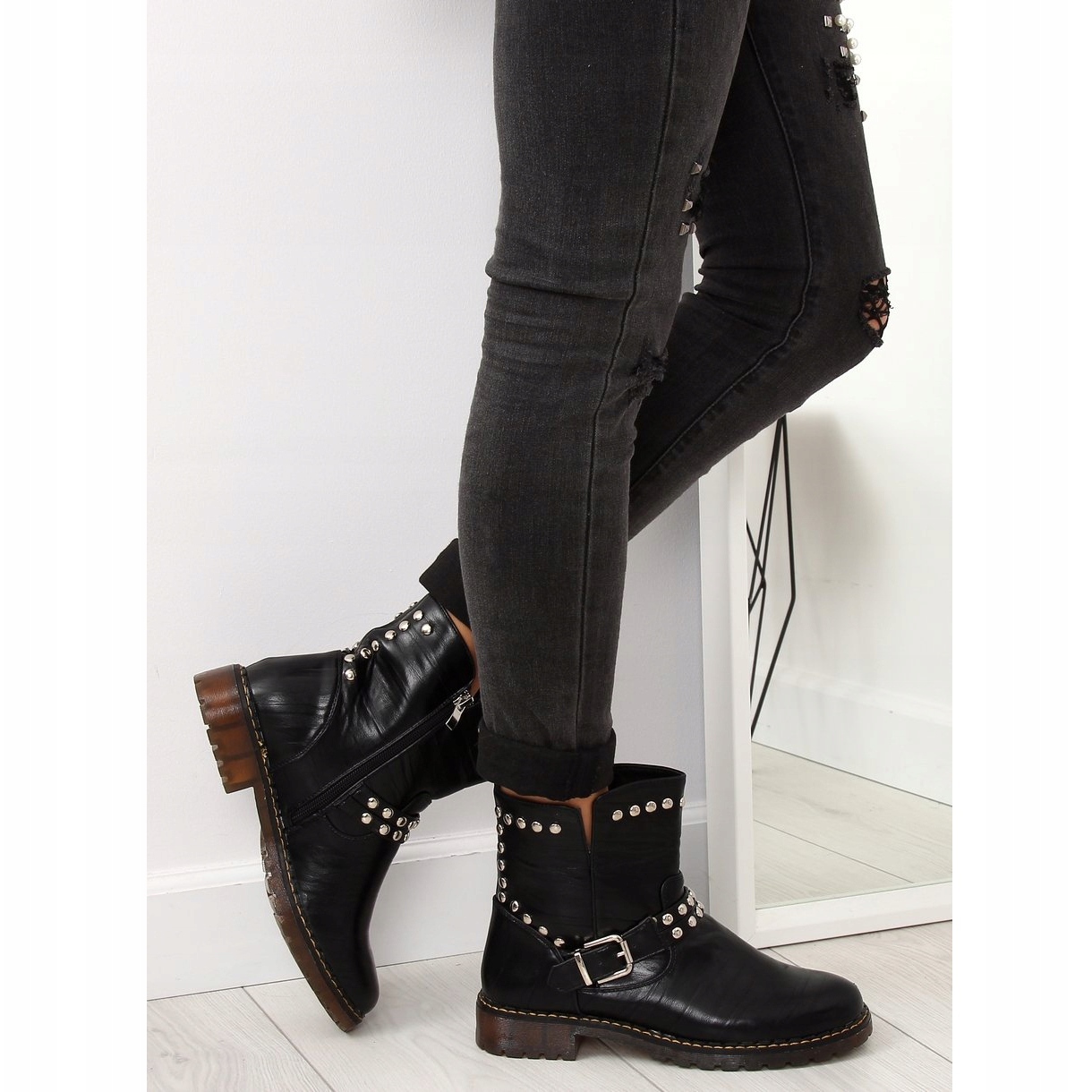 Découvrez vos nouvelles bottes militaires A-30 Black préférées - la combinaison parfaite de style et de confort ! Ces bottes plates pour femme accrocheuses attirent l'attention avec des éléments décoratifs originaux, tels que des clous et des coutures soigneusement travaillées le long de la semelle. Grâce à eux, chaque style acquerra un caractère unique et vous vous démarquerez certainement de la foule.