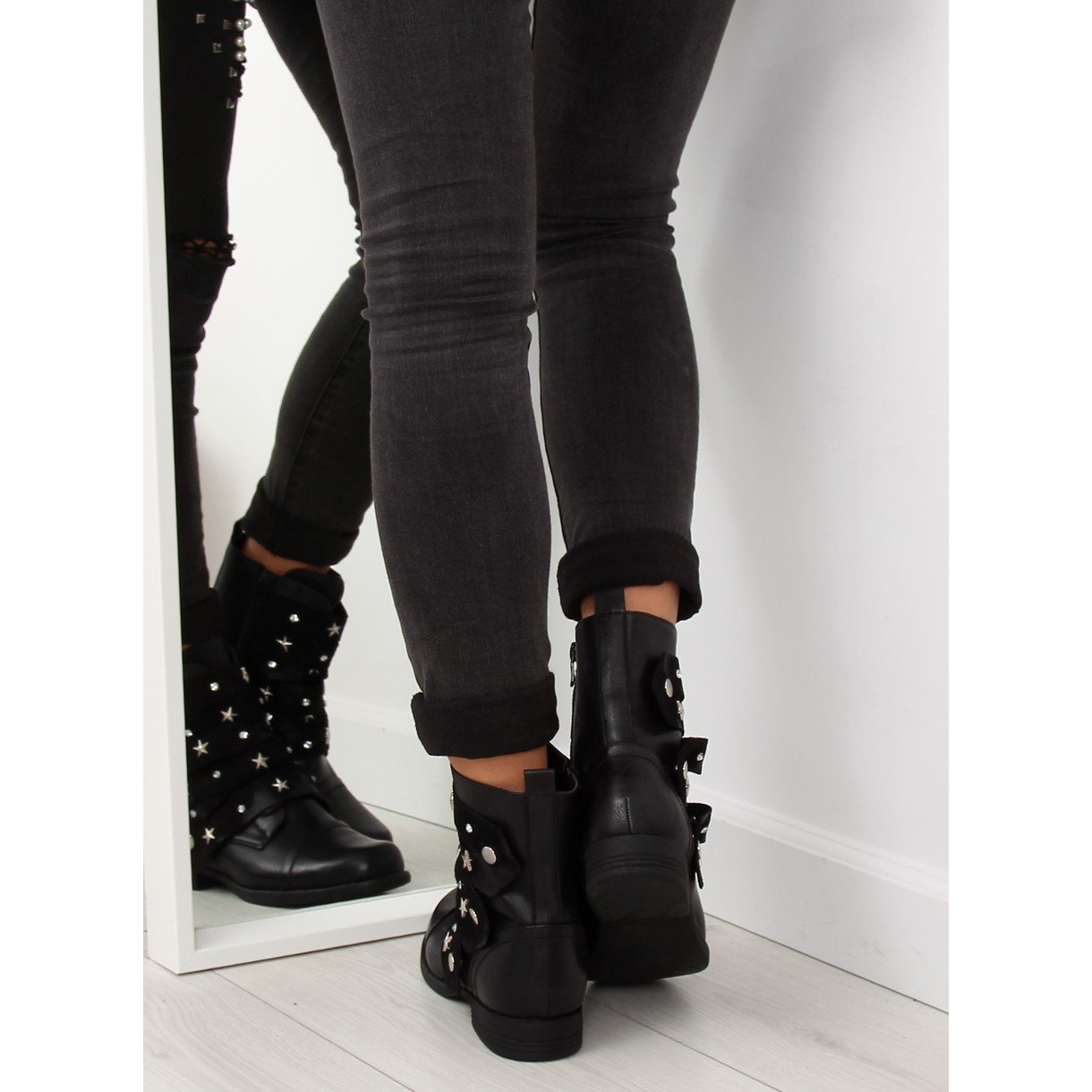 Ce modèle se caractérise par un bout rond et une hauteur cheville, ce qui ajoute un look tendance. Un talon plat de 2,5 cm de haut assure stabilité et confort. Tout cela fait des bottes militaires C567 Black un excellent choix pour les femmes qui apprécient le style et le confort uniques.
