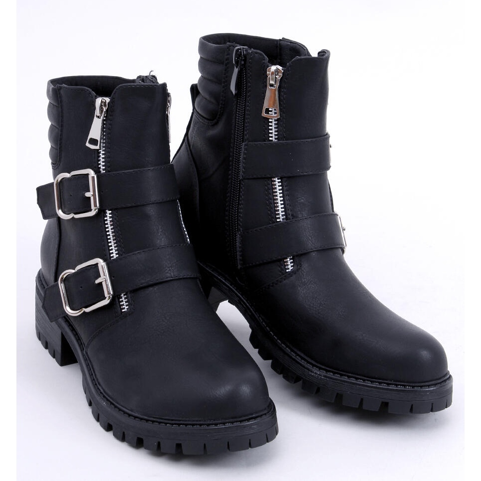 Ces bottines sont la solution parfaite au quotidien. Leur talon plat de 4 cm et leur hauteur cheville les rendent non seulement élégantes, mais aussi pratiques et agréables à porter. La finition noire et lisse les rend parfaitement assortis à différents styles, leur ajoutant une touche militaire tendance.