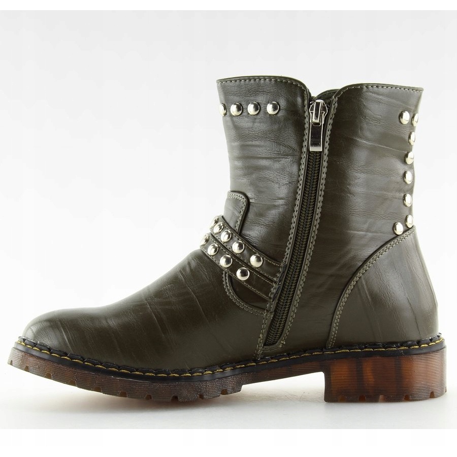 Découvrez le style et le confort avec les bottines militaires pour femme A-30 Green ! Ces bottes plates originales allient design moderne et fonctionnalité, parfaites pour un style de tous les jours. Des éléments décoratifs accrocheurs, tels que des clous et des coutures soignées le long de la semelle, attirent l'attention et donnent du caractère à chaque ensemble.