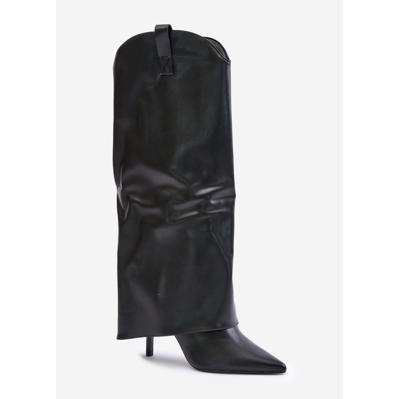 Boots Model 35858 Le noir est le choix parfait pour les femmes qui veulent combiner l'élégance et le confort. Ces bottes noires en cuir écologique de haute qualité avec une tige cassée, qui tombe efficacement sur le talon, donnant à toute la stylisation un caractère unique. Le nez dans le Spitz ajoute du style et de la classe aux chaussures, ce qui en fait un excellent accent dans les tenues quotidiennes et plus formelles.