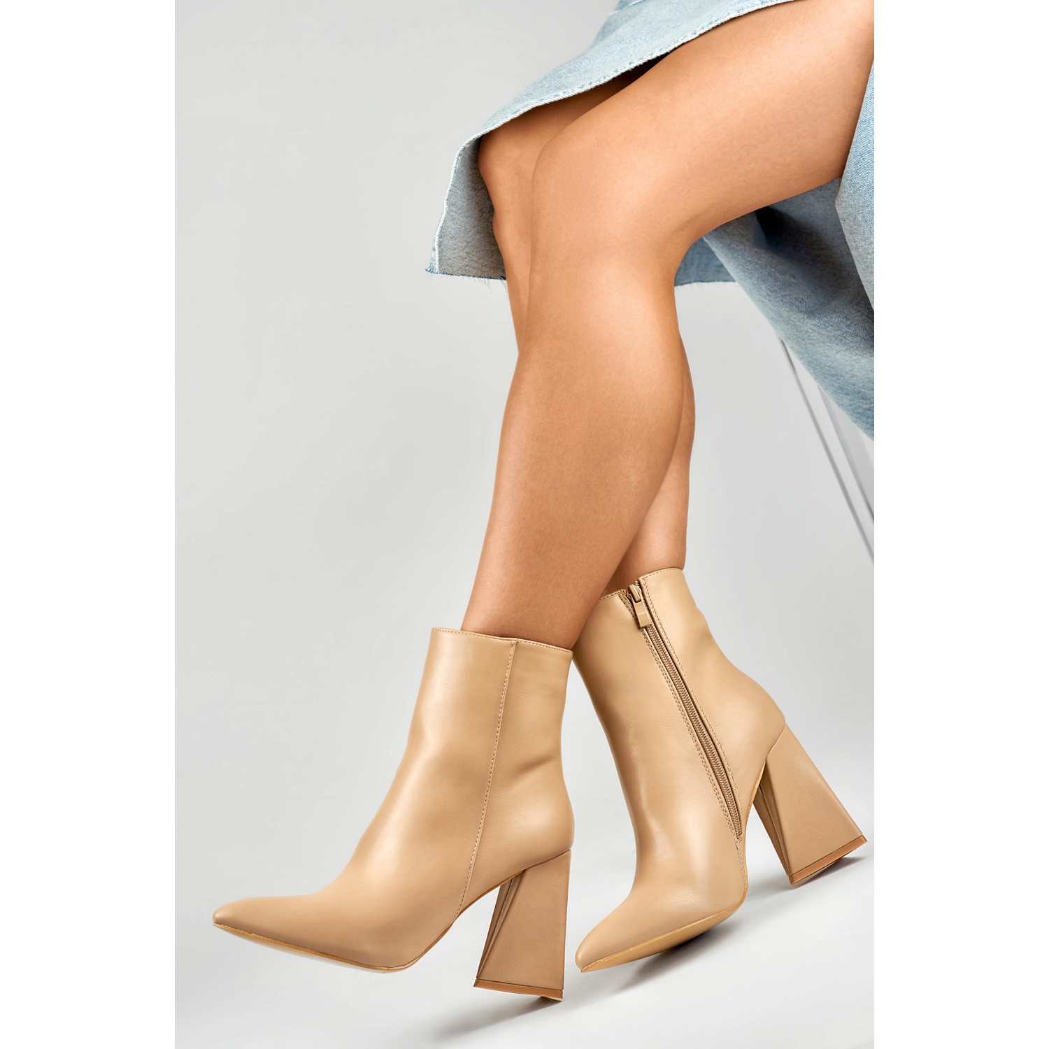 Le curseur pratique situé sur le côté le rend plus facile à mettre et à retirer, et le nez pointu donne aux bottes un caractère moderne et à la mode. Ces bottes beiges se mélangent parfaitement avec de nombreuses stylisations d'automne et d'hiver - du décontracté à plus élégant.